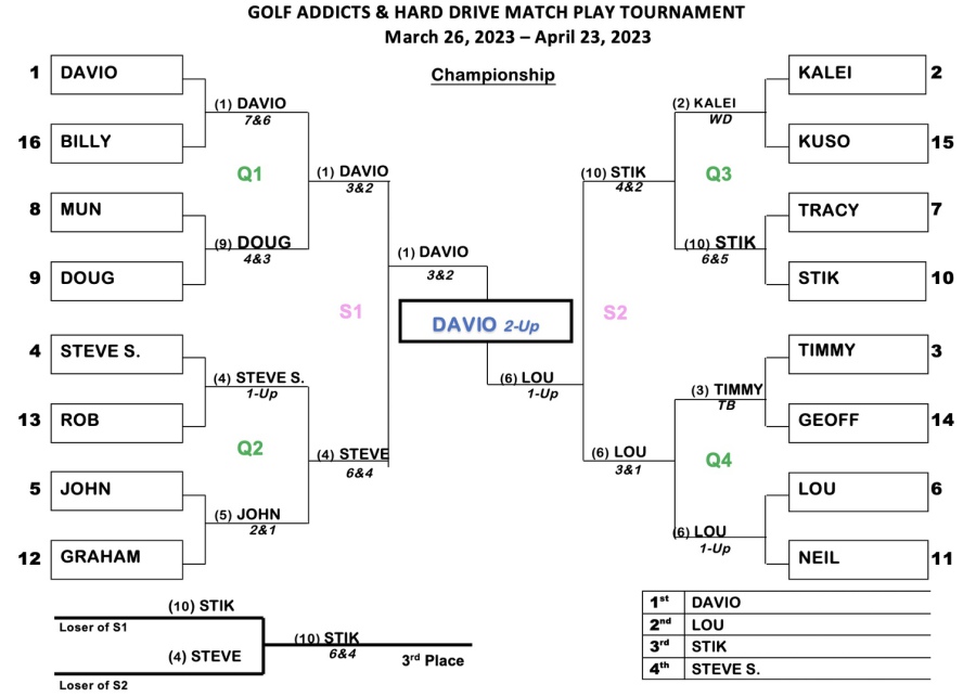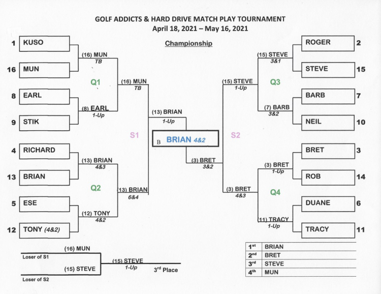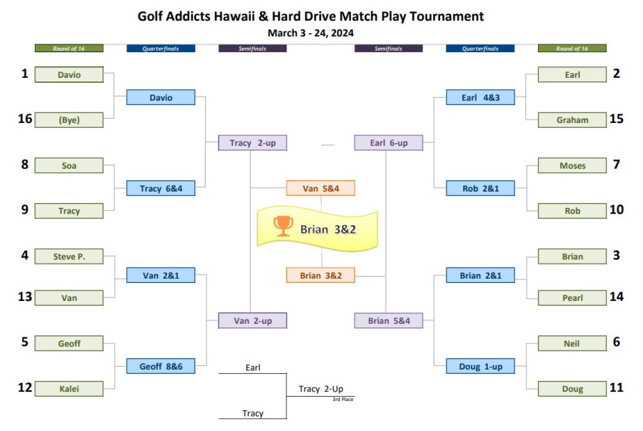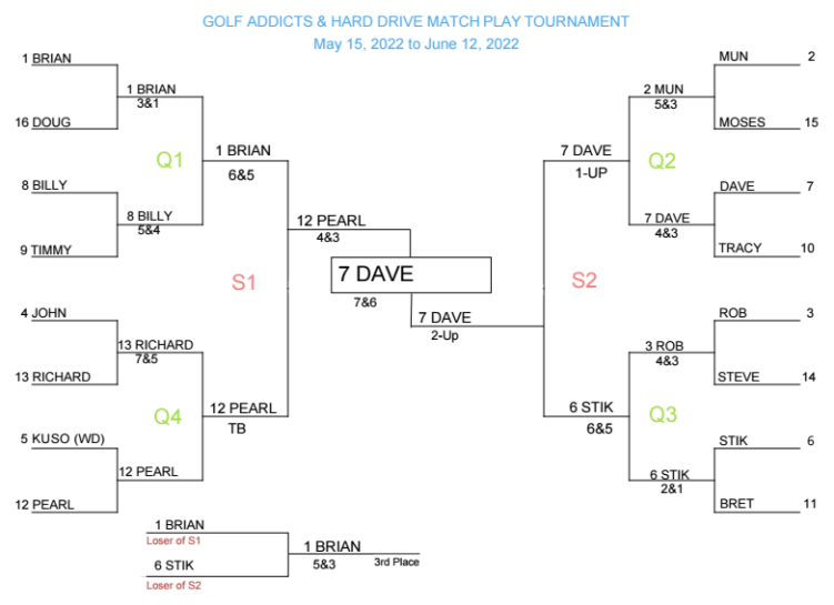 Results from Past Golf Addicts & Hard Drive Match Play Tournaments, 2021 - 2024